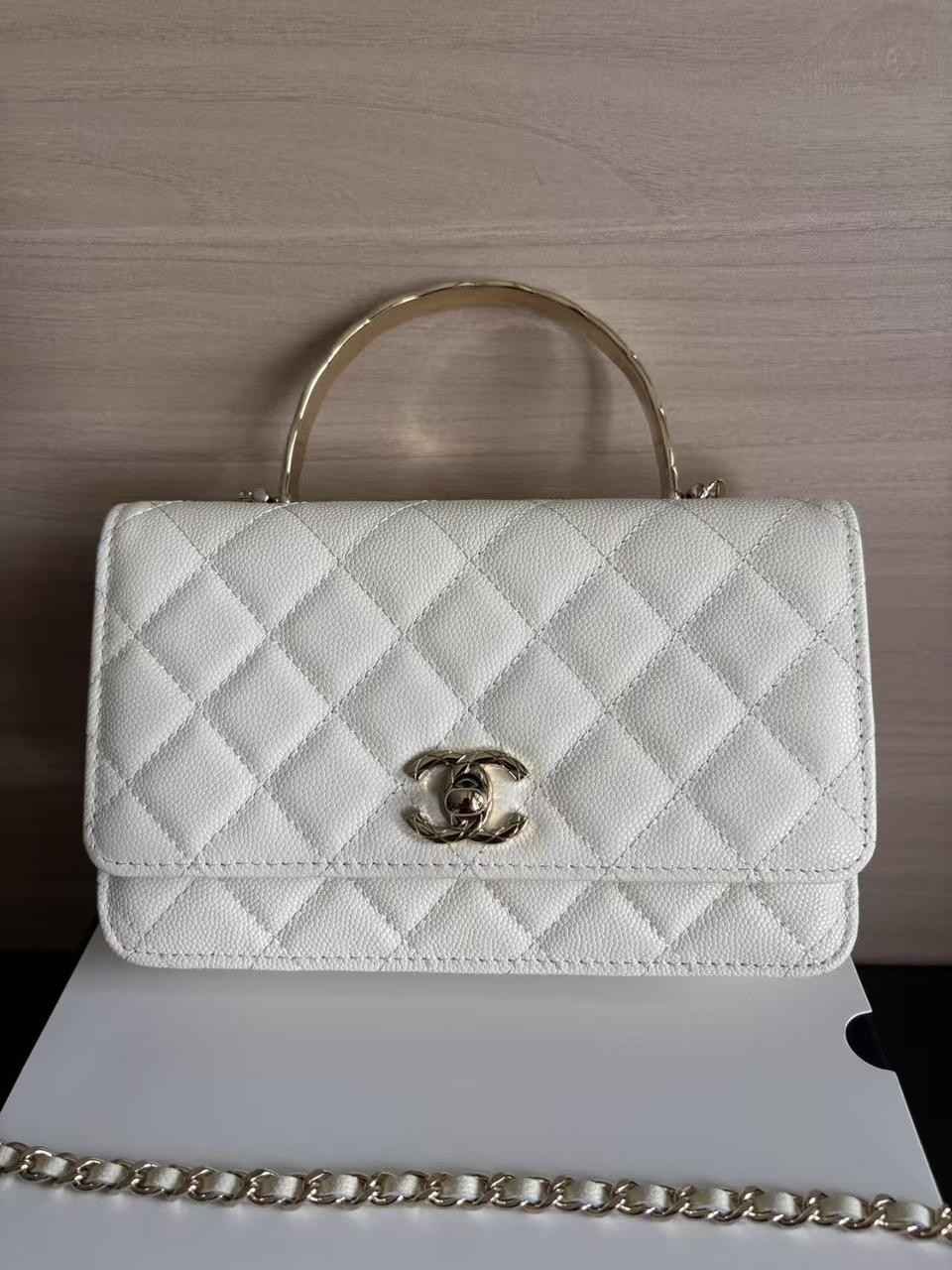 CC 25P Wallet Woc Handle 19cm White Leather Silver