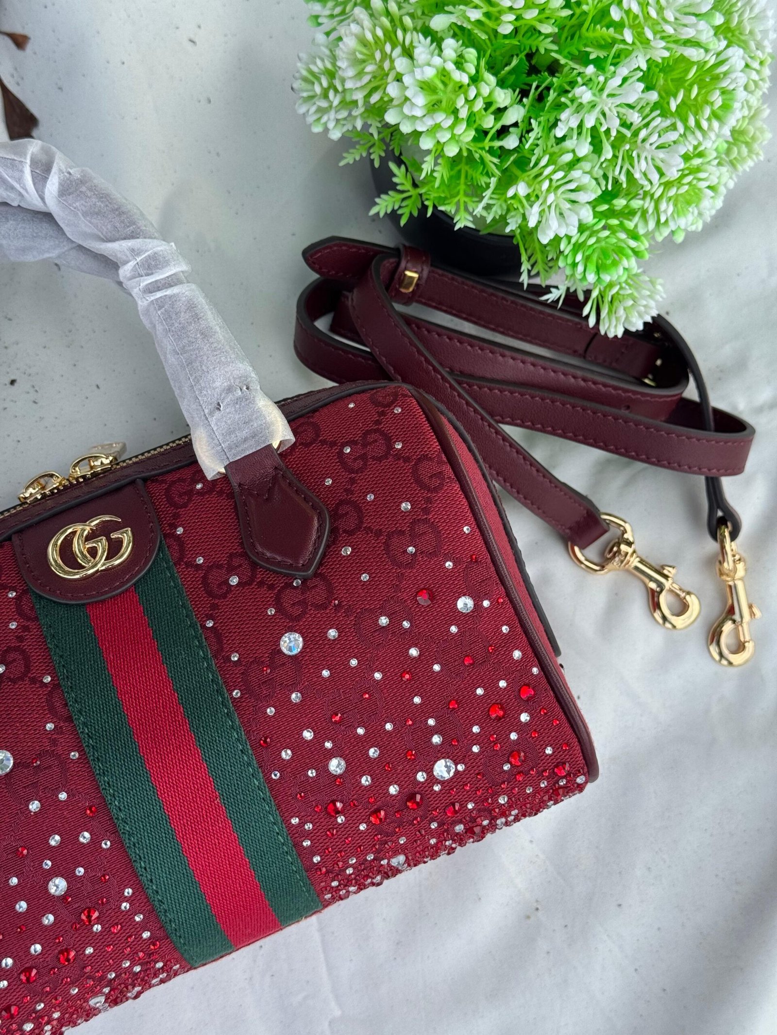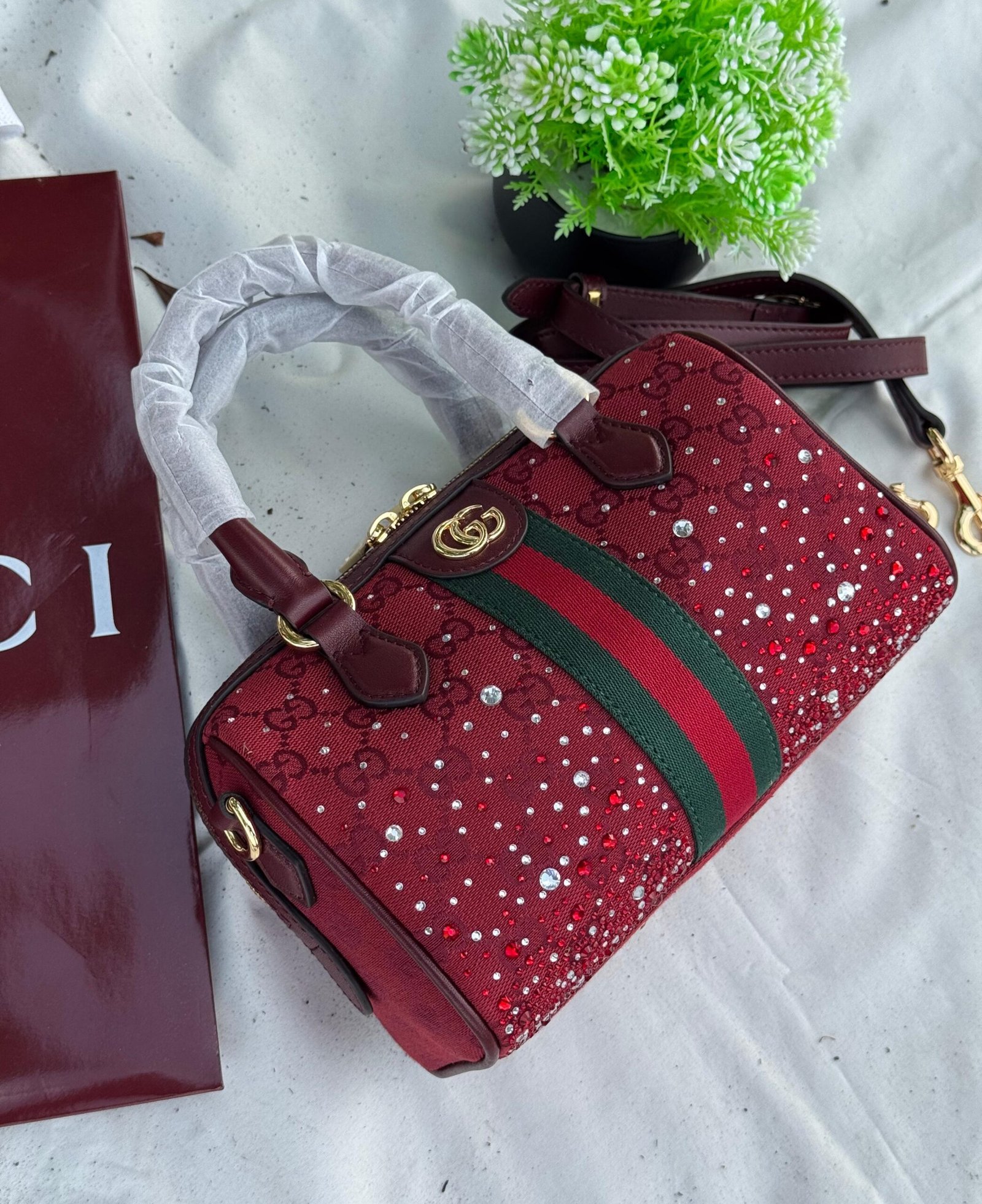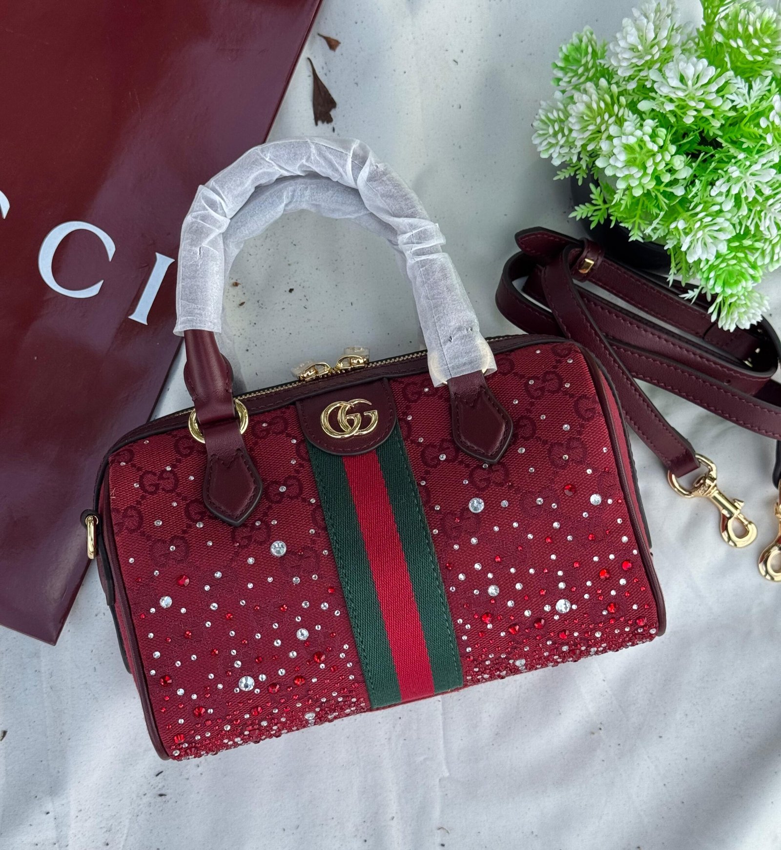 Be the first to review “Gucci Ophidia Crystals Small Boston Bag”